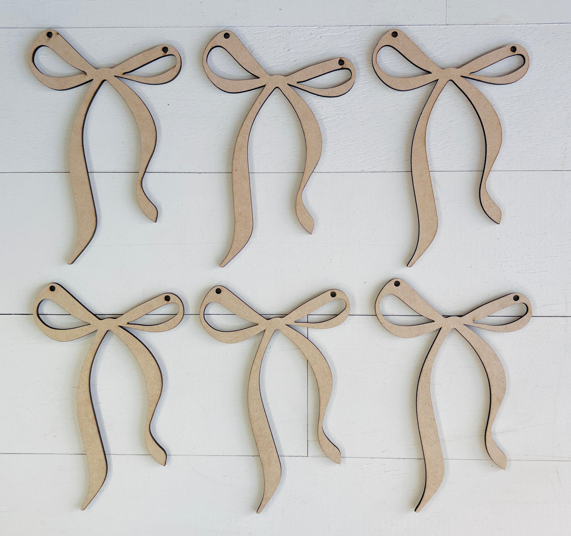These dainty MDF bows are perfect for topping off your ornaments or small projects! Each has a single hole for easy hanging—just paint, add ribbon, and you’re ready to decorate.