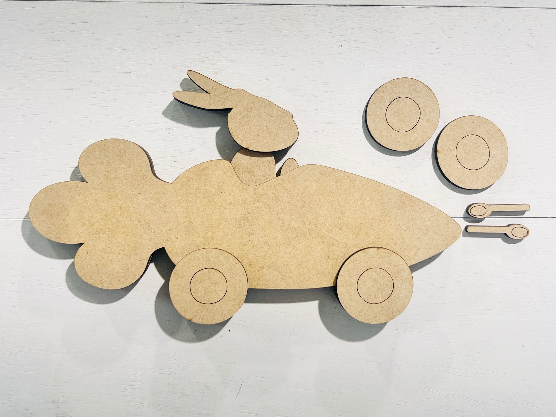 This playful bunny is ready to roll. Easy to paint, easy to display, and perfect for adding a little joy to your spring decor.
