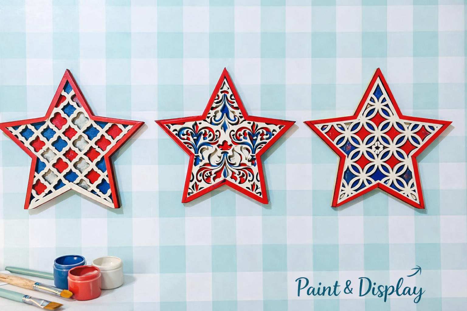 Introducing our Filigree Layered Stars - the perfect addition to your patriotic or Americana decor! This set includes three stars, each with a different design, adding a touch of whimsy and charm to any space.